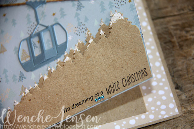 Landskapet på side 2 av kortet har jeg laget ved hjelp av mønsterark, og diesene LR0734 Tinys Gondola og LR0735 Tinys Forest Horizon.
